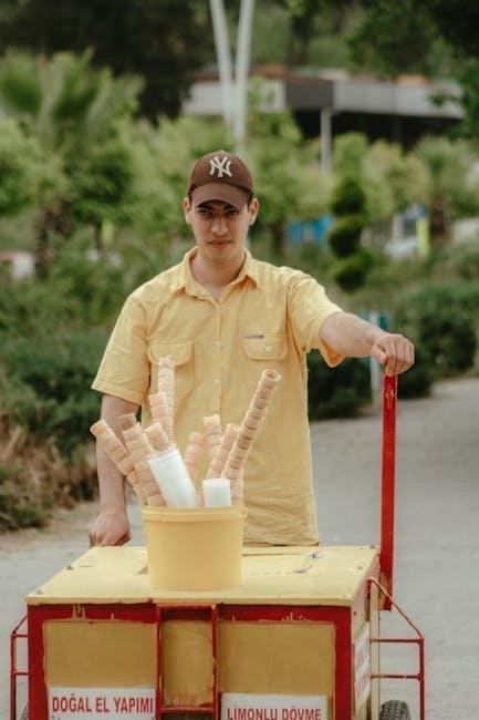 The ICE-70P1’s design prioritizes ease of use, with simple assembly and operation. The manual emphasizes safety precautions, advising against using non-Cuisinart accessories; It also includes recipe ideas to inspire creativity. Understanding the bowl-freezing process and proper component assembly, as detailed in the manual, are key to achieving consistently delicious results with this popular Cuisinart ice cream maker.