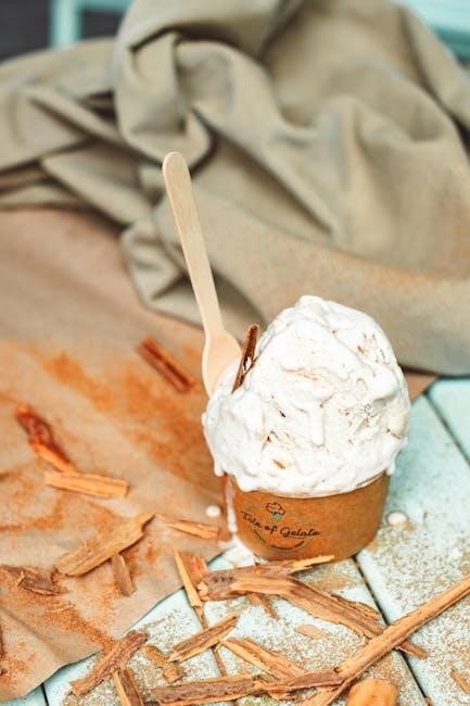 Cuisinart’s ICE-70 series manual provides a foundational ice cream recipe, typically involving combining cream, milk, sugar, and flavorings. Before starting, ensure the freezing bowl is thoroughly frozen – a crucial step for optimal results. The manual emphasizes chilling the mixture for at least two hours prior to churning, enhancing the texture.